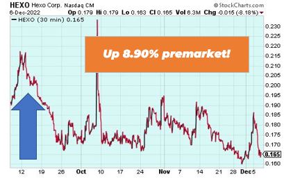 Hexo is up 8.90% premarket after announcing repayment of 8% of unsecured convertible debentures. The leading producer of high-quality cannabis products paid the amount of $40.14 million together with all accrued and unpaid interest. Paying off this debt looks to have built investor confidence.