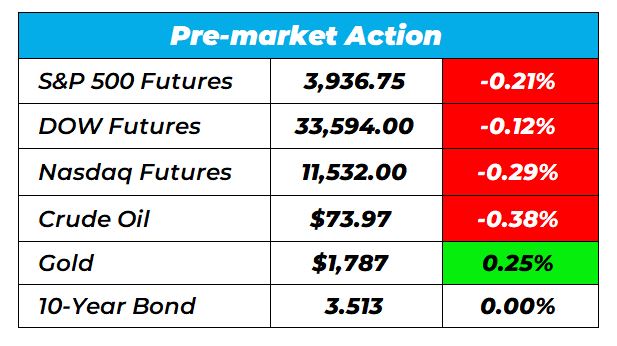 Good morning Wake-Up Watchlisters! While you’re sipping coffee you’ll see stocks slid on Wednesday. Yesterday top executives at Goldman Sachs, J.P. Morgan and Bank of America all voiced concerns about the economic outlook, triggering more recession worries. The negative sentiment boosted demand for the U.S. dollar and oil evened out after a big fall on Tuesday.