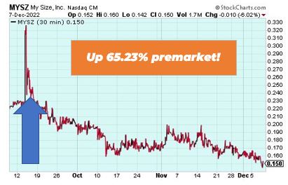 My Size, Inc. is up 65.23% premarket after announcing a one-for-twenty-five reverse stock split to its Board of Directors. Starting on December 9, 2022, the company’s common stock will trade on the Nasdaq Capital Market on a split adjusted basis under a new CUSIP number 62844N 307.