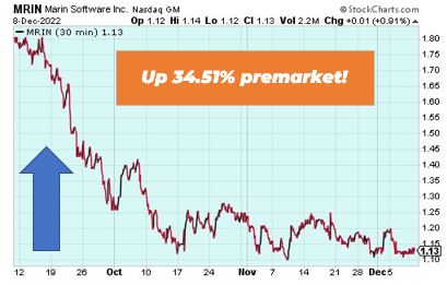 Marin Software is up 34.51% premarket after announcing its joining Walmart connect’s platform partner program. Brands using the MarinOne platform will now have access to Walmart Connect consumers. Walmart reaches nearly 90% of U.S. households each year online.