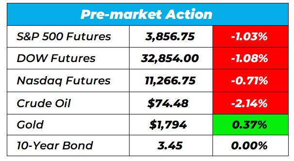 Good morning Wake-Up Watchlisters! While you’re sipping coffee you’ll see U.S. equity-index futures dropped on Friday. Contracts on the S&P 500 and Nasdaq 100 fell at least 0.8%, with indexes posting their biggest declines since Nov. 2 on Thursday. With the Federal Reserve recently announcing it will continue rate hikes into 2023, economists now see a 60% probability of recession next year.