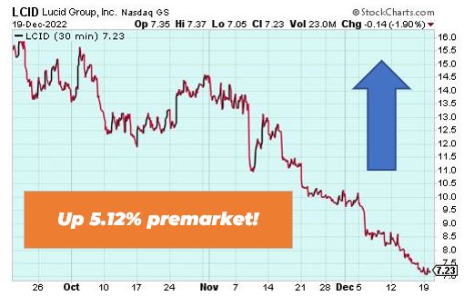 Lucid Group is up 5.12% premarket after the company raised more than $1.5 billion. The EV company sold more than 56.2 million shares of its common stock for gross proceeds of approximately $600 million. Lucid expects that the additional capital raised will further strengthen ts balance sheet and liquidity position.
