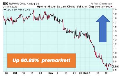 IsoPlexis is up 60.85% premarket after agreeing to be acquired by Berkeley Lights to create a premier functional cell biology company. The combined company, which will be named PhenomeX, will provide live cell biology research tools which deliver deep insights into cellular function and new perspectives on phenomes.
