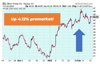 Zillow Group is up 4.12% premarket after a bullish note from Evercore analysts with tentative signs of a rapid housing recovery. There are some analysts that believe the first quarter could still be tough, but see brighter days ahead. Zillow is up 30% since January 1st, and the housing market could be turning around earlier than expected.