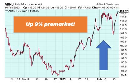 AirBnB is up 9% premarket after beating Wall Street expectations in its fourth quarter earnings report and guidance. The home-sharing platform sees first quarter revenue between $1.75 billion and $1.82 billion versus estimates of $1.68 billion. In 2022, Airbnb’s active listing grew by 16% compared to 2021.