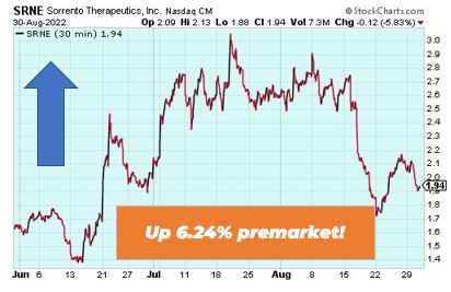Sorrento Therapeutics is up 6.24% premarket after one of it companies, Scilex, has been granted fast track designation by the FDA for a drug to help with acute lower back pain. Fast track designation makes the drug eligible for written communication needed support drug approval and eligibility for accelerated approval.