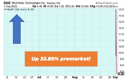 BioAffinity Technologies is up 32.89% premarket after announcing the pricing of its IPO. WallachBeth Capital announced the cancer diagnostics company priced its initial public offering of 1,282,600 units of securities at $6.125 per unit. The shares became tradable yesterday.