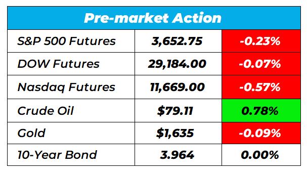 Good morning Wake-Up Watchlisters! While you’re sipping coffee you’ll see stock futures fell on Wednesday. The 10-year Treasury yield briefly spiked past 4%, marking a closely watched level for the worst bond sell-off in decades. Fixed income and currency markets also saw big moves as central bank and recession worries keep investors on edge.