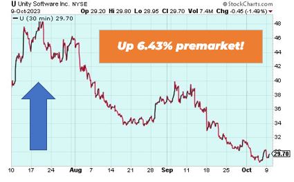 Unity Software is up 6.43% premarket after a surprise departure of its CEO John Riccitello following controversial price changes unveiled at the video game developer late last month. Unity had said it would limit fees for developers for 4% of a game’s revenues for those generating more than $1 million in sales, and suggested the new structure would apply retroactively. However, the group also confirmed its third quarter earnings guidance, which calls for adjusted profits in the region of $95 million on revenues of around $545 million, suggesting management has arrested, for the time being, the impact of its pricing chances.