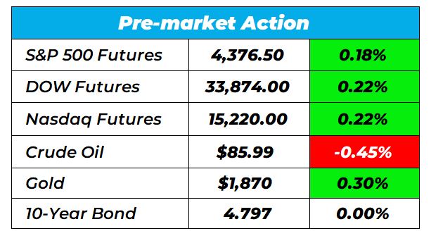 Good morning Wake-up Watchlisters! While you’re sipping coffee you’ll see stock futures rose on Tuesday. The boost came after Federal Reserve officials voiced hope for a pause in interest rate hikes. Plus, more economic stimulus from China helped investors get back into the game.