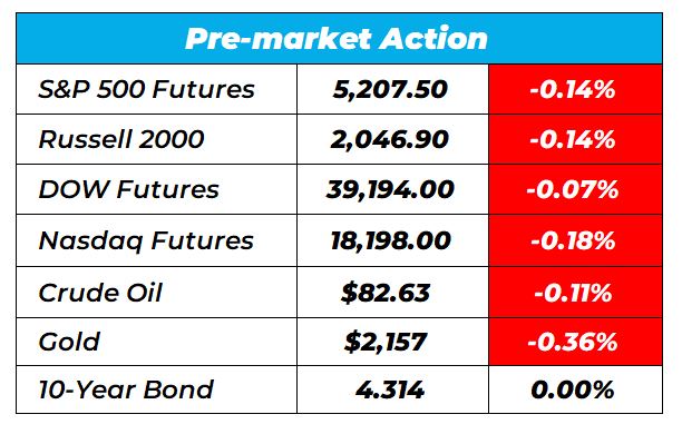 Good Morning Wake-Up Watchlisters! While you’re sipping coffee you’ll see stock futures were down on Tuesday. Traders are looking at the latest announcements from Nvidia’s artificial intelligence conference. The chip giant pulled back 1.5% in premarket trading (more on that below) and Wall Street is waiting on the next move for monetary policy. The Federal Reserve begins its two-day policy meeting Tuesday.