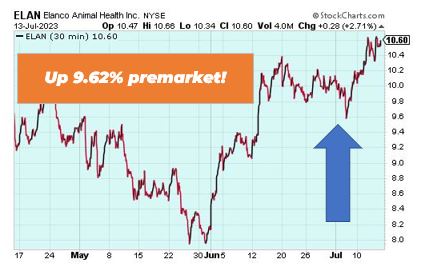Our Lead Fundamental Tactician Karim Rahemtulla is high on ELAN as a company. In fact, he knew about these major aninmal products ahead of time. The company crossed $10 back in June, which was quite a move from its lows.