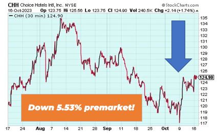Choice Hotels is down 5.53% premarket after its latest proposal to acquire Wyndham Hotels for $90 per share. The proposal would also include a cash or stock election mechanism, which would provide Wyndham shareholders with the ability to choose either cash, stock or a combination of cash and stock consideration.