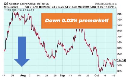 Goldman Sachs is down 0.02% premarket after seeing its profit fall in the third quarter. The loss came from a writedown on its GreenSky fintech business and its investment in real estate. The Wall Street giant reported net profit of $2.06 billion, or $5.47 per share, for the three months ended Sept. 30. Goldman’s ill-fated foray into consumer banking proved costly, losing $3 billion over three years.