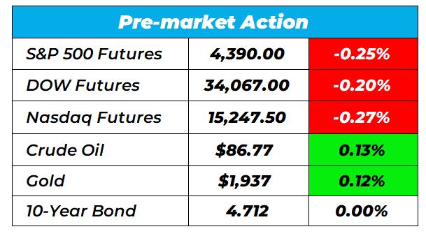 Good morning Wake-up Watchlisters! While you’re sipping coffee you’ll see stock futures were down on Tuesday. The drop came as investors continue to weigh the Israel-Hamas conflict on the latest flood of earnings. The rising geopolitical tensions could lead to a global recession. However, earnings season is off to a strong start with several signs Corporate America could be seeing an end to its own recession.