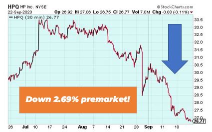 HP is down 2.69% premarket after billionaire investor Warren Buffett continues to trim his stake in the PC maker following the group’s poor earnings last month. Buffett sold 4.8 million shares valued at around $130 million last week, according to a Securities and Exchange Commission filing published Friday.