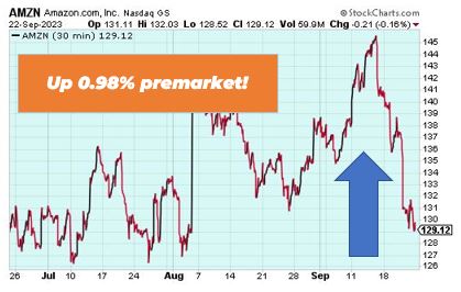 Amazon is up 0.98% premarket after announcing it will invest $4 billion in San Francisco-based startup Athropic. The move into Artificial Intelligence is an effort to compete with big tech rivals Google and Microsoft. As part of the deal, Amazon will get access to Anthropic’s AI technologies and build them into its cloud services offerings.
