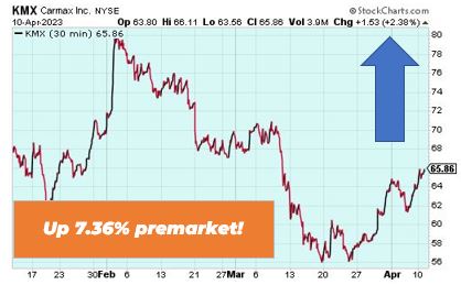 CarMax is up 7.36% premarket after reporting fourth quarter and fiscal year results. Despite net revenue falling well short of expectations due to “vehicle affordability challenges,” the used car seller reported fiscal fourth-quarter profit that was more than double was expected. Overall, retail gross profit per used vehicle rose $82, or 3.7%, to $2,277.
