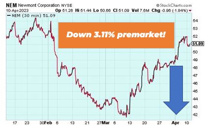 Newmont Corp. is down 3.11% premarket after the Colorado-based gold giant made its best-and-final offer for Newcrest Mining Ltd. That would value the Australian group at just under $20 billion. The all-share deal would see Newcrest stockholders receiving 0.4 if a Newmont share for each of their holdings, valuing the group at $29.4 billion, a 5.3% improvement from Newmont’s previous bid and 16% higher than its initial offer.