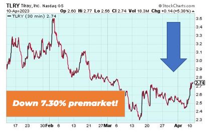Tilray Brands is down 7.30% premarket after the cannabis producer’s announced a planned acquisition of Hexo for around $56 million in an all-stock transaction. The deal is expected to close in June 2023 but must first clear regulatory hurdles and win approval from Hexo shareholders.