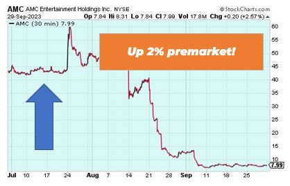 AMC Entertainment is up 2% premarket after the announcement of its latest concert movie featuring Beyonce. The concert films aim to fill gaps caused by a prolonged strike by actors and writers in Hollywood.