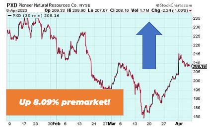 Pioneer Natural Resources is up 8.09% premarket after reports of a possible takeover from Exxon Mobil. According to The Wall Street Journal, Exxon had informal talks with the Irving, Texas-based shale producer about a possible acquisition, with the paper citing the group as a “top target” for the use of its recent windfall profits from last year’s energy price surge.