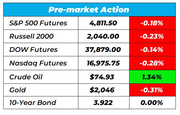 Good morning Wake-Up Watchlisters! While you’re sipping coffee you’ll see stock futures slipped on Wednesday. It was the first possible pullback after the recent record-setting rally. Eyes will be on upcoming data for clues as to whether the Fed can nail a “soft landing.”
