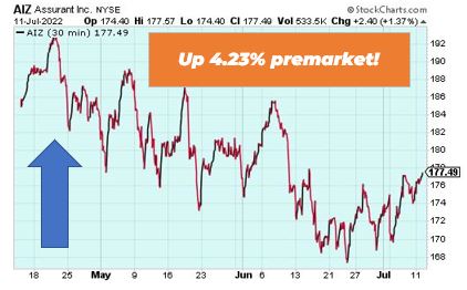 Assurant is up 4.23% premarket after being named one of Ward’s ‘Top 50 performing property and casualty insurers’ for the 16th consecutive year. The company was also recognized for outstanding financial results. In 2022, shares have rallied 12.4% year to date against the industry’s decrease of 6.4%. Keep an eye on Assurant going forward.