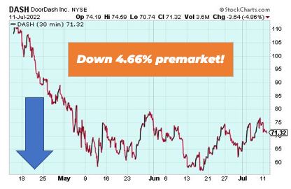 Doordash is down 4.66% premarket after the company shut down Chowbotics, the Hayward-based robotic salad-making business it bought in February 2021. The move was due to the fact that Chowbotics’ Sally robots weren’t meeting DoorDash’s internal benchmarks. Doordash is looking volatile.