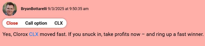Once I saw this, I got positioned on CLX in The War Room yesterday and closed a 20% winner in less than 15 minutes.