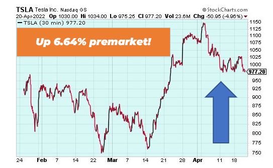 Tesla is up 6.64% premarket after recording a record $3.3 billion profit in the first quarter of 2022. These numbers came despite supply issues and the shutdown of its Shanghai factory. Tesla also ramped up its efficiency – delivering over 310,000 cars in the first quarter – and that’s not counting the estimated 90,000 lost due to the Shanghai shutdown. Tesla is looking strong going forward.