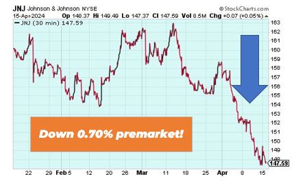 Johnson & Johnson is down 0.70% in premarket trading after sales from its blockbuster psoriasis drug Stelara fell short of expectations.