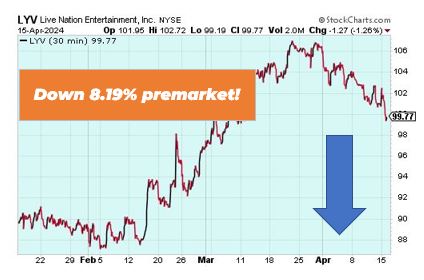 Live Nation Entertainment is down 8.19% premarket after a Wall Street Journal that said the Justice Department was preparing to sue the parent of Ticketmaster. The lawsuit alleges the company used its leverage for ticketing live events to undermine the competition. The suit could be filed as soon as next month, the Journal reported.