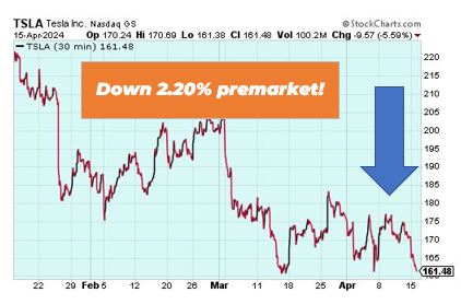 Tesla is down 2.20% in premarket trading after CEO Elon Musk said he plans to layoff 10% of Tesla’s global workforce. Aside from the layoffs, Tesla’s head of powertrain and energy engineering Drew Baglino is also stepping down. Baglino has been with the company for 18 years and investors wanted him to expand his role at the company rather than leaving it.