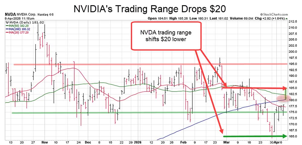 For more than five months, Nvidia traded within a well-defined range between $195 and $175. That range provided stability and created repeatable opportunities for traders as the stock moved between support and resistance. However, that structure has now broken down, and the range has shifted $20 lower.