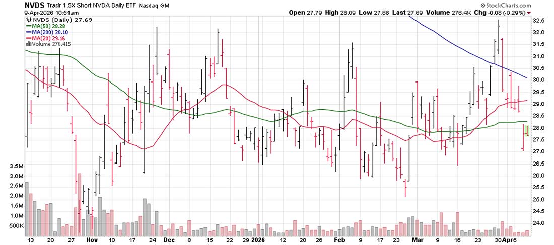 Traders looking to position for the downside can use the Tradr 1.5X Short NVDA Daily ETF (NVDS) or intermediate-term put options. I walk through both in detail in the video I share below.