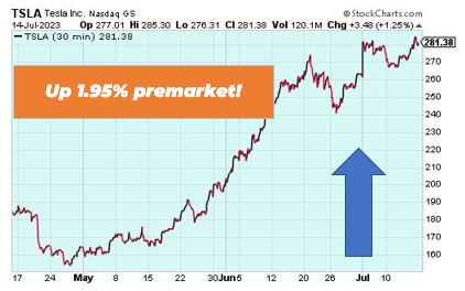 Tesla is up 1.95% premarket after its first cybertruck was rolled off the assembly line over the weekend. The truck was two years behind schedule after it revealed the prototype in 2019 and said production would begin in late 2021. The unveiling allows Tesla to compete in the lucrative electric pickup market with Rivian and the Ford F-150 Lightning.