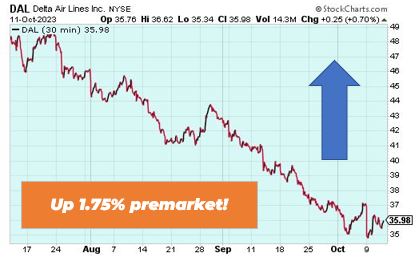 Delta Airlines is up 1.75% premarket after earnings topped forecasts. However, it’s also expected that higher fuel costs will hit travel boom profits. Looking into the final months of the year, Delta said it sees revenue growth of between 9% to 12% with earnings in the range of $1.05 to $1.30 per share.