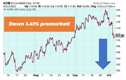 Exxon Mobil is down 1.41% premarket after the most recent oil slump. However, the biggest U.S. energy provider still sees solid Q3 profits from summer rally. Exxon says it sees operating profits for the three months ending in September in the region of $8.3 billion to $11.4 billion, and the recent downtrend was the biggest pullback in global crude prices in several months.