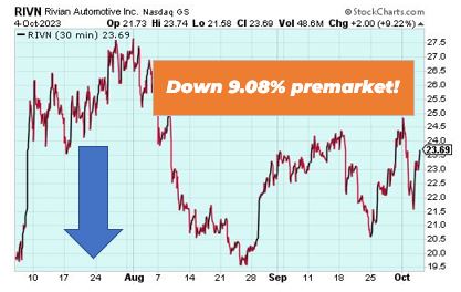 Rivian Automotive is down 9.08% premarket after the electric vehicle company said it will sell $1.5 billion in convertible bonds as it looks to fund the production of its R2 electric SUV. This bond sale ended up offsetting a solid revenue forecast, as third quarter revenues likely doubled from last year, to between $1.29 billion and $1.3 billion.