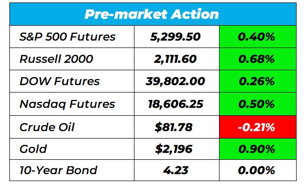 Good Morning Wake-Up Watchlisters! While you’re hitting up Starbucks for your morning caffeine fix you’ll see stock futures were up on Tuesday. The indexes were on the redound ahead of data points to see if there’s still room for another rally. The S&P 500 is up almost 10% this year, and Ai demand that’s benefitting several tech companies is a big reason why.