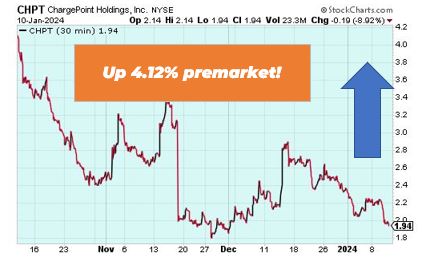 Chargepoint is up 4.12% in premarket trading after its recent announcement of a new strategic reorganization, which includes cutting approximately 12% of its global workforce. This move is intended to enhance financial performance and ensure long-term, sustainable growth. The reorganization is expected to save the company around $33 million, which may have positively influenced investor sentiment.