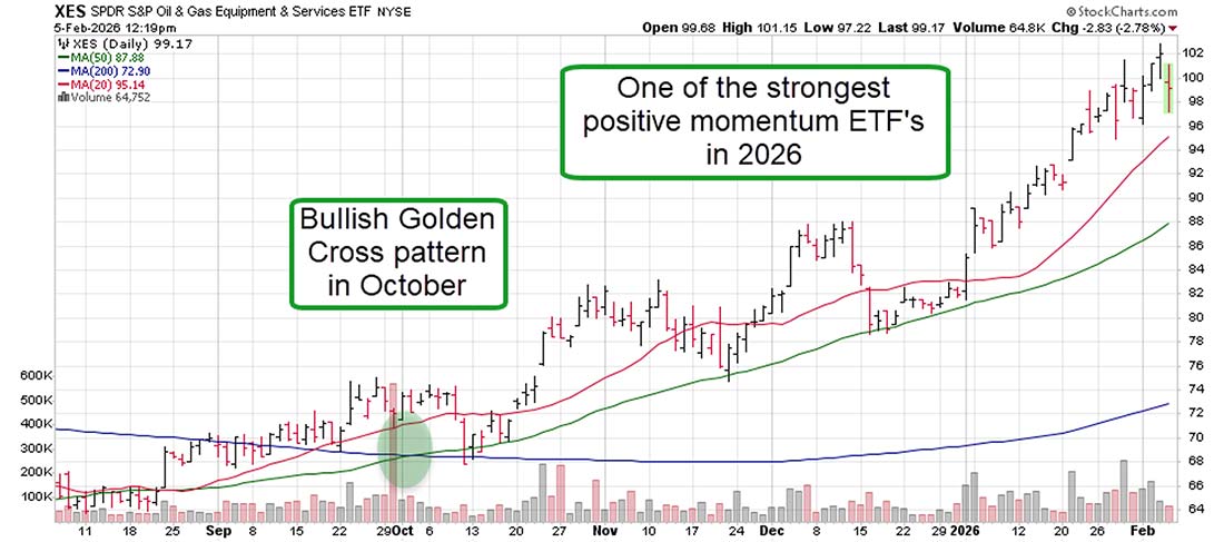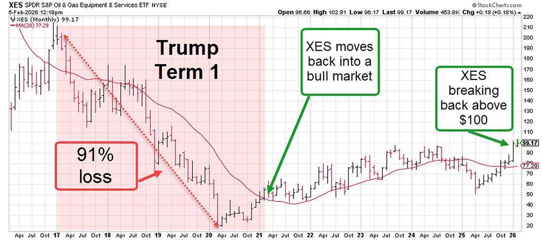 Since bottoming in 2020, XES shares shifted into a new long-term bull market in February 2021. That bull market has delivered gains of more than 100%, and the trend is heating up.