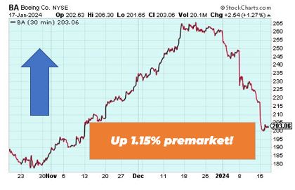 Advanced Micro Devices is up 3.03% premarket. The boost came as demand for its EPYC processors grows. The company will report earnings on January 30, 2024 and expectations are high. Revenues are projected to hit $6.11 billion, a 9.2% increase from the previous years. Plus the current Zacks rank of #2 (buy) is further bolstering investor optimism.
