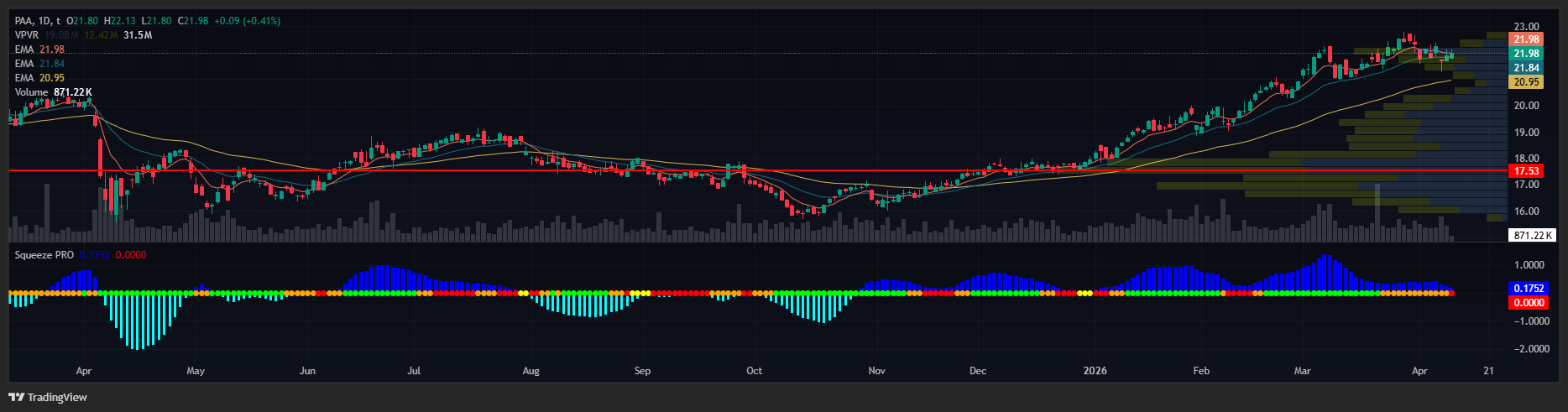 I do not have a position in PAA. I trade faster-moving momentum stocks, and this one grinds. But if you are the kind of investor who likes a clean trend, a business with predictable cash flows, and a 7.6% yield while you wait, this setup checks every box on my list.