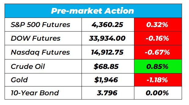 Good morning Wake-up Watchlisters! While you’re spreading butter across a slightly burnt piece of toast you’ll see stock futures slipped on Thursday. The drop came after Federal Reserve Chair Jerome Powell’s latest comments, which were perceived as somewhat hawkish by investors. Furthermore, upcoming data on retail sales, manufacturing, and jobless claims could serve as potential catalysts as investors remain vigilant about the possibility of a recession.