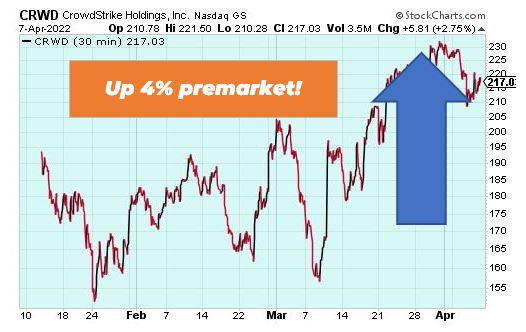 Crowdstrike is up 4% premarket after the cybersecurity company announced it would partner with Mandiant, which is formerly known as FireEye, which Alphabet (GOOGL) agreed to buy last month. I know – that’s a lot of names. But the point is – Crowdstrike just struck up a partnership with one of tech’s biggest names – Google. Keep an eye on Crowdstrike going forward.