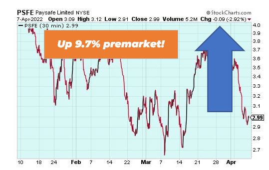 Paysafe Limited is up 9.70% premarket as the specialized payments company announced a new CEO – fintech industry leader Bruce Lowthers. Lowthers joins Paysafe after spending 15 years at FIS, one of the world’s leading fintech companies. This announcement comes off the heels of Paysafe’s expansion into Pennsylvania and New Jersey earlier this week. Paysafe stock is looking strong right now.