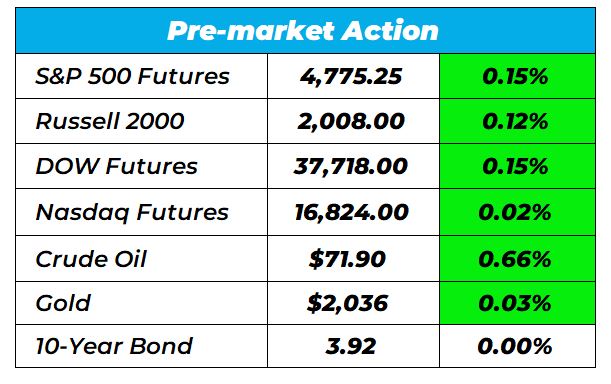 Good morning Wake-Up Watchlisters! While you’re sippin coffee you’ll see stock futures were up on Monday. The three major indexes notched their seventh straight week of gains, marking the longest winning streak since 2017. The Dow also posted an intraday record on Friday, and the Nasdaq100 had a new closing high.